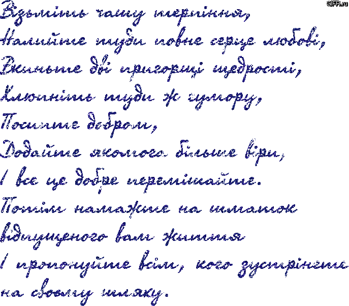 Коли після закінчення педагогічного училища я вперше переступила поріг школи, то зрозуміла, що це - моє, що школа – найдивніша країна, де кожен день не схожий не попередній, де кожна мить – це пошук чогось нового, цікавого, де немає часу нудьгувати, сваритися чи витрачати час на порожнє, де кожен учень – це будівельник майбутнього, а значить всі жителі цієї країни відповідають за майбутнє. Весь час треба квапитися, і квапитися тому, щоб більше дізнаватися про нове, щоб стати і залишатися завжди цікавим для людей, що оточують тебе, щоб дарувати свою енергію, знання, уміння. Квапитися, щоб не запізнитися.